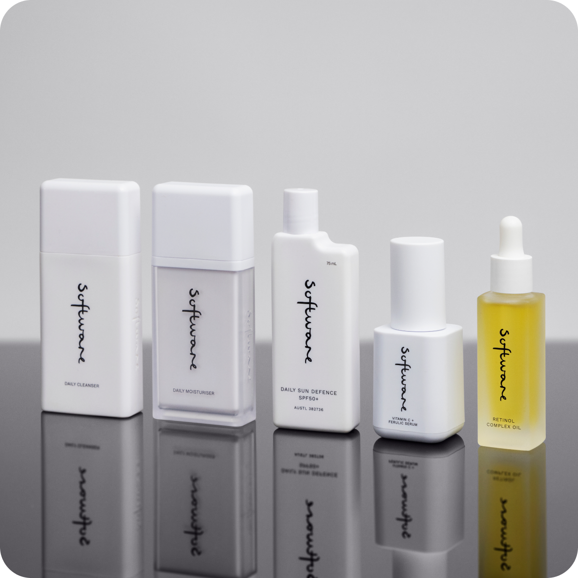 The Complete Skincare Routine pairs gentle essential products with highly targeted active ingredients for healthy skin. It is made up of our Daily Cleanser, Daily Moisturiser, Daily Sun Defence SPF50+, Vitamin C + Ferulic Serum, and Retinol Complex Oil.